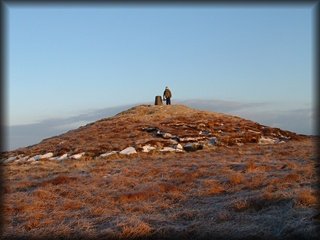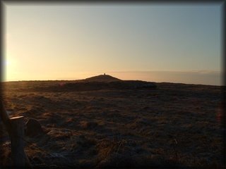 and waterproofs as it was about 1C when we set off - the sun had not yet risen. We thought we had taken the what looked like the gentle option as it's been a while since we climbed a mountain, but we where wrong. I had to stop every 100m to have a break and then I realised that if you zigzag it's an awful lot easier. Well anyway we reached the summit at about 10:00 and the sun was just about over the clouds. The ground was frozen solid with a crisp patchy layer of snow/ice which was good as otherwise it would have been quite muddy and wet.